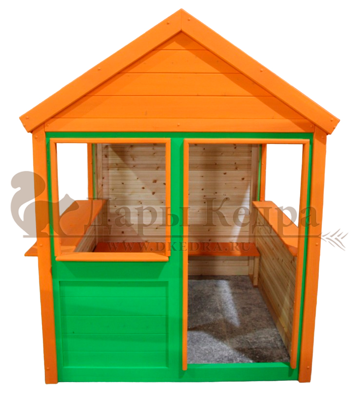 Детский игровой домик Детский игровой домик из кедра создан мастерами компании специально для комфортной, интересной игры со сверстниками. Домик на даче или площадке детского сада подарит вашему ребенку массу удовольствия, радости, пользы, приобщая его к будущей взрослой жизни. Детский домик станет безопасным укрытием в жару или дождь. Ваш маленький непоседа точно оценит по достоинству такое приобретение! Комплектация домика может изменяться согласно Вашим пожеланий. Цвет домика тоже предлагается на выбор и оплачивается отдельно.