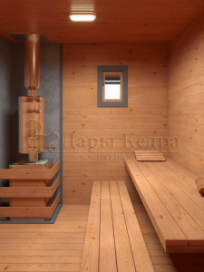 Создаст приятную атмосферу с приглушённым светом, а также визуально расширит пространство парной.