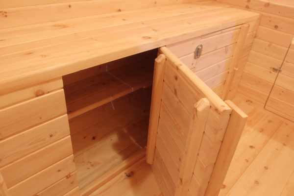 При обустройстве кемпинг-домов и габаритных бань (эксплуатация в качестве летнего домика) обратите внимание на шкаф, он точно вам пригодится для размещения вещей. Внутри - полки и штанга для аккуратного размещения одежды. Высота - 1,8 м, ширина - 0,9 м, глубина - 0,45 м.