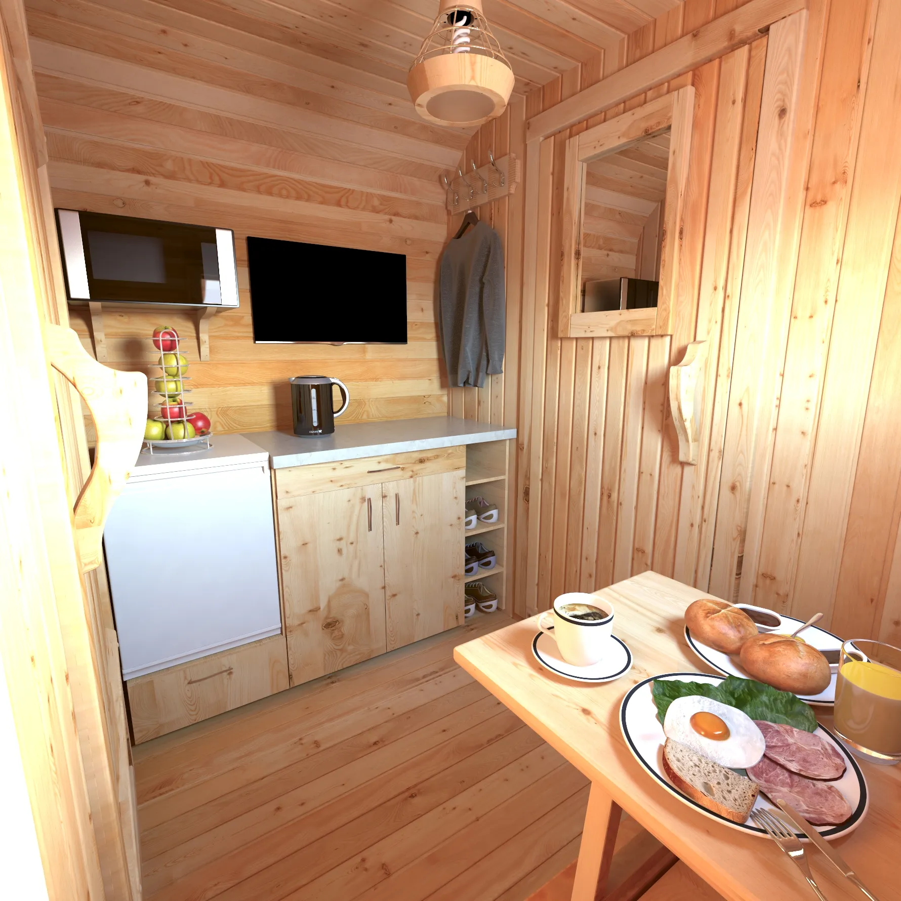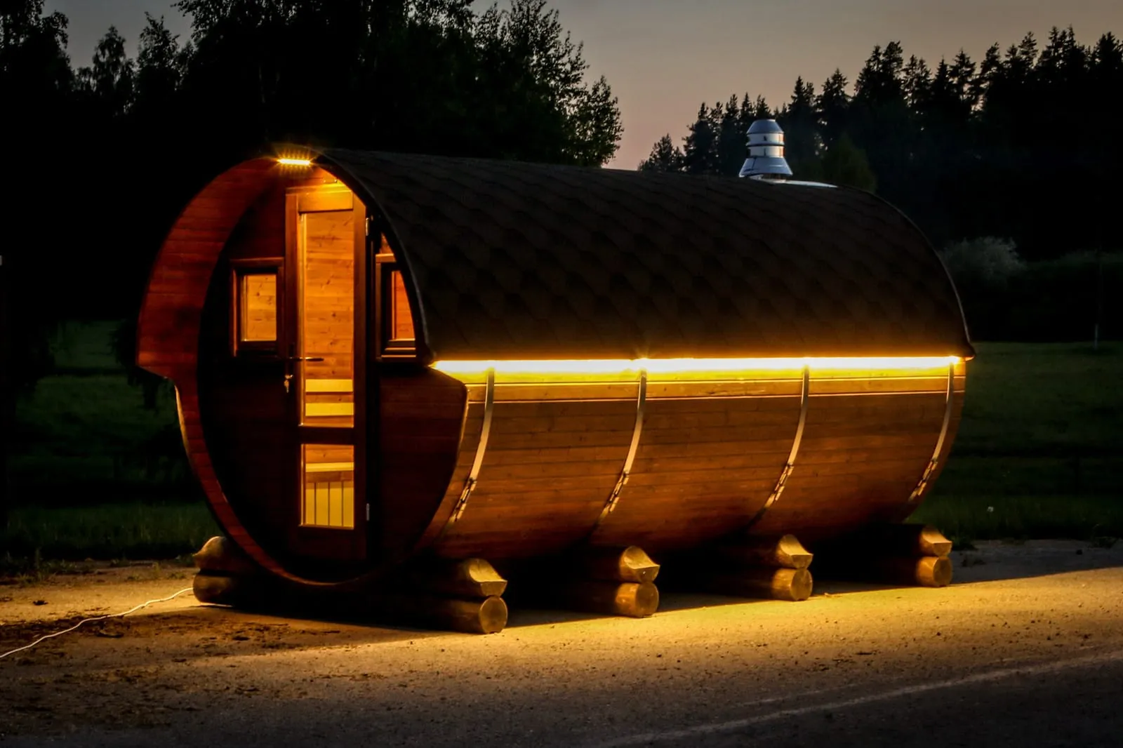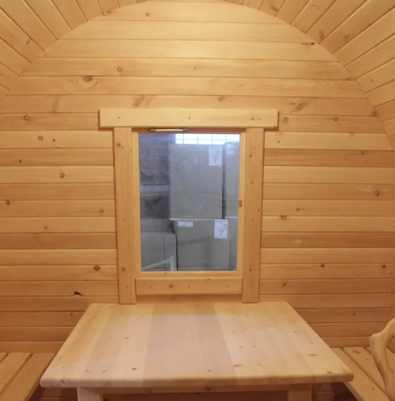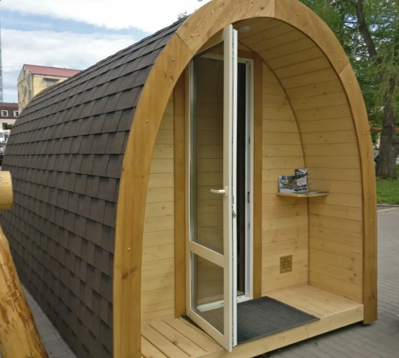 Домик подходит для дачного использования в теплое время года или обустройства загородных баз отдыха. Его можно разграничить на две зоны и использовать как кухню и спальное помещение. Домик оборудован увеличенным окном, четырьмя лежаками из кедра, вешалкой и полкой из кедра. Для удобства пользования кемпинг дом можно укомплектовать верандой с лавочками или козырьком.