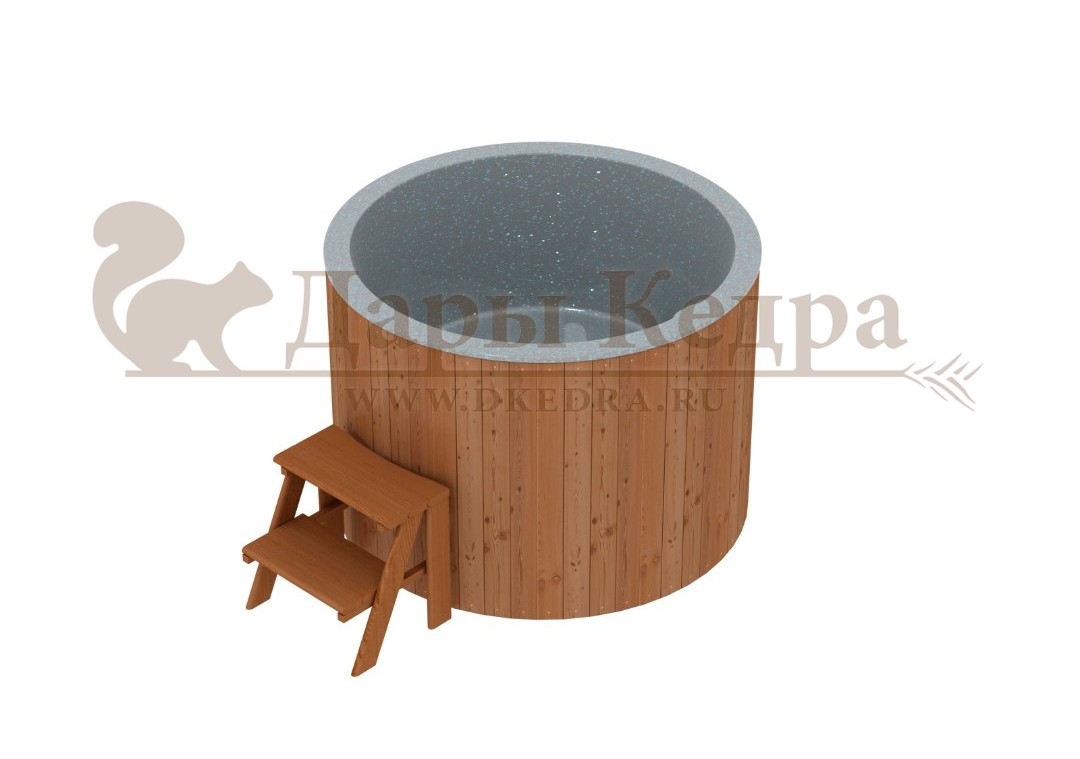 Круглая композитная купель «Премиум 160» Это купель с круглой внутренней чашей, которая изготовлена из современного прочного и термоустойчивого материала (композита). Форма чаши обеспечивает комфортную посадку внутри изделия. Для удобного использования купель оснащена приставной лестницей. Обручи из нержавеющей стали декорируют купель с композитом и равномерно распределяют нагрузку во время процедур. Подходит для установки в помещении и на открытом воздухе. При уличном использовании, рекомендуется дополнительно оборудовать купель водогрейной твердотопливной печью. Композитная вставка облегчает уход за изделием и увеличивает срок службы купели.