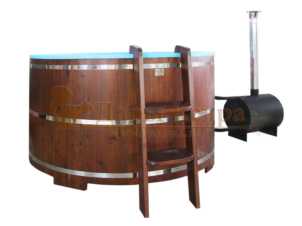 Фурако круглая из кедра с литой термопластиковой вставкой с внешней печью Это уличная подогреваемая купель с круглой внутренней чашей из термопластика, которая имеет цельную форму вместе с сиденьями и дном. Для удобства пользования купель фурако оборудована приставной лестницей. Подогрев воды осуществляется за счет внешней печи с дымоходом. Термопластик устойчив к воздействию температур, облегчает уход за фурако и увеличивает срок ее службы. Парение на свежем воздухе – это отличный способ укрепить здоровье и поддержать организм в тонусе.
